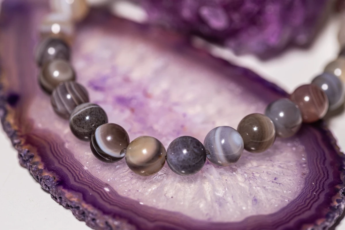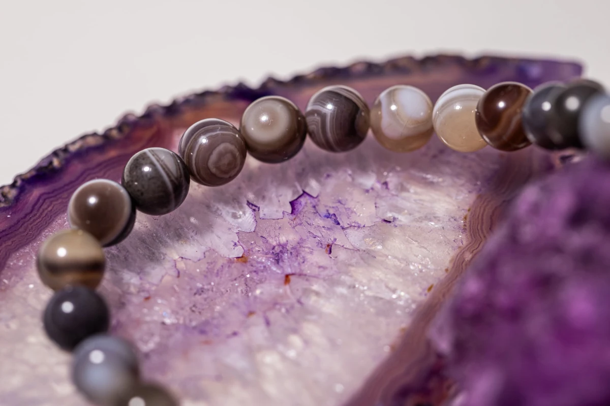 Agat to jeden z najbardziej popularnych kamieni naturalnych. Jest odmianą chalcedonu, należy do grupy krzemianów. Występuje w każdym możliwym kolorze, od przyświecającego po jednolity. Jednak najbardziej charakterystyczną cechą tego minerału są pasy lub wstęgi, które są nieodłącznym elementem każdego agatu. To właśnie różni go od chalcedonu - chalcedon nie posiada wstęg. Za różnorodność wstęg odpowiadają domieszki pierwiastków.