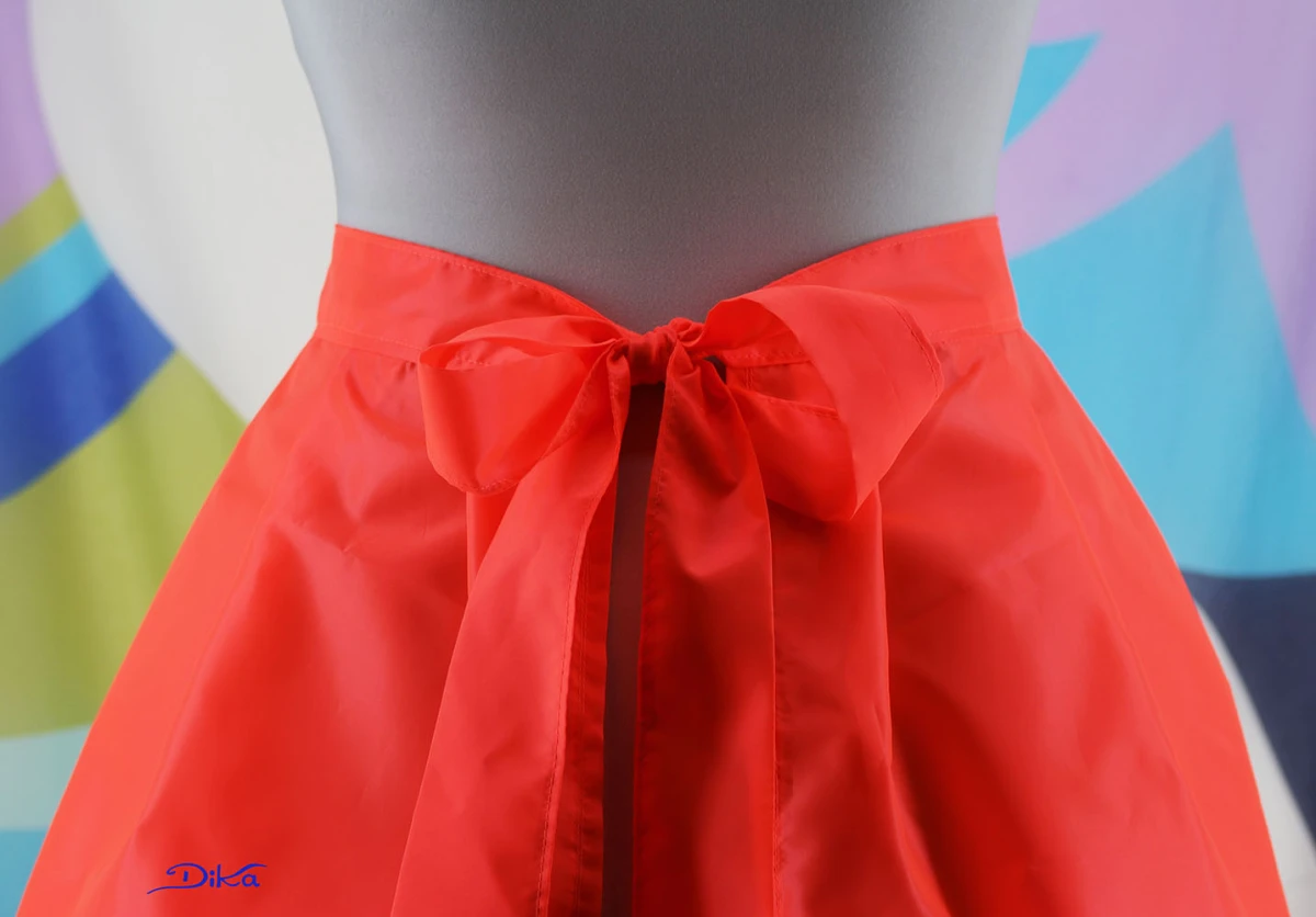 Oryginalny fartuszek, projekt własny. Jest wykonany z cienkiego ortalionu, dzięki czemu doskonale nadaje się dla manicurzystek i pedicurzystek, gdyż nie przywiera do niego pył z frezarek. Dzięki wiązaniom ma uniwersalny rozmiar, jeśli chodzi o wysokość i tęgość osoby, która go użyje. Mój manekin ma w talii 73 cm. Pomarańczowy i czerwony są dostępne od ręki, chabrowy lub seledynowy mogą być gotowe w ciągu 2-3 dni na zamówienie.