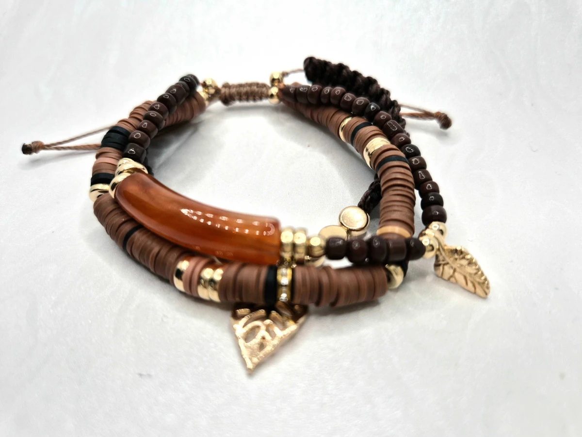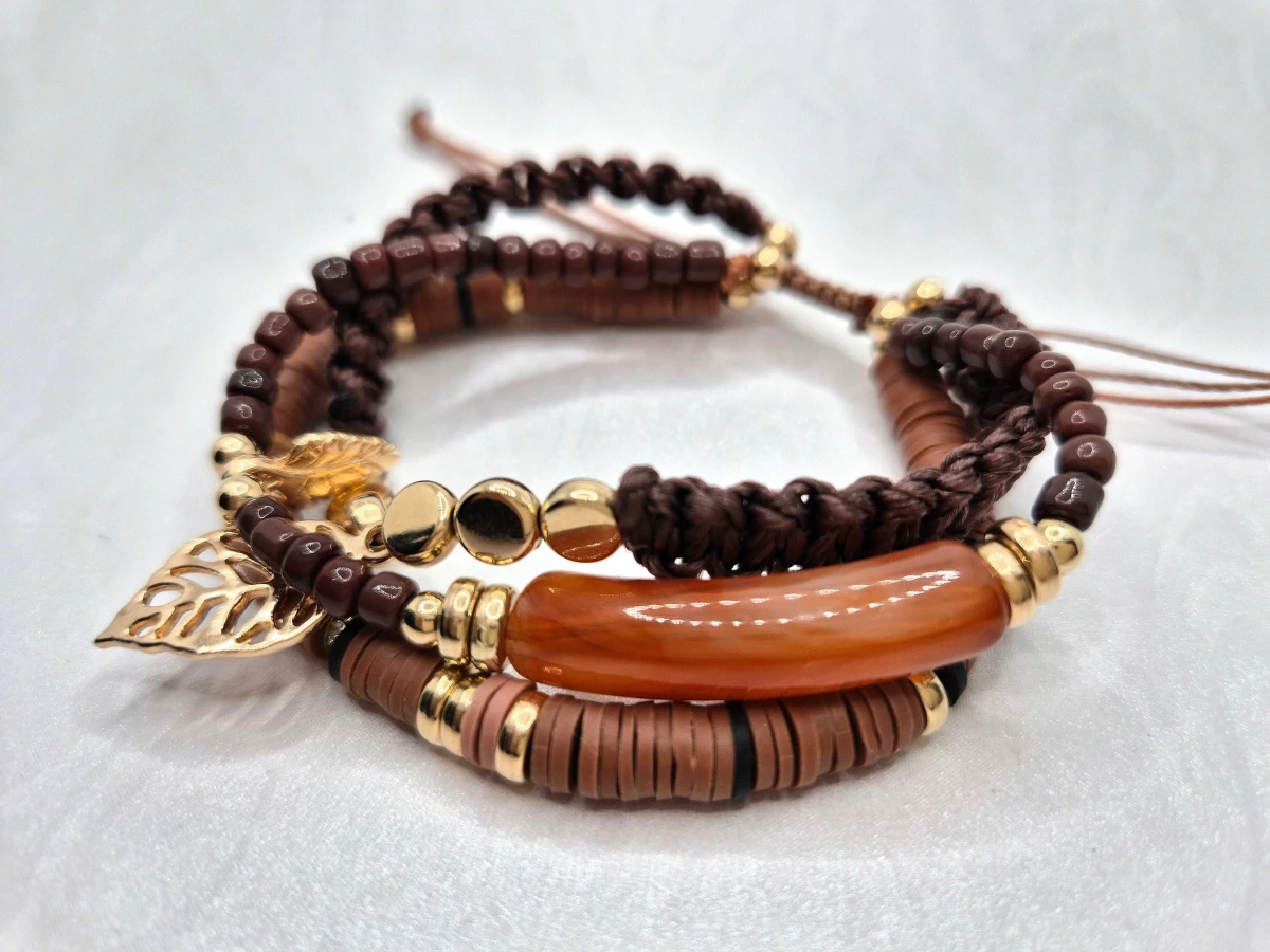 Bransoletka NK-10 „Złoty Dotyk Natury” – komplet trzech bransoletek w odcieniach ziemi