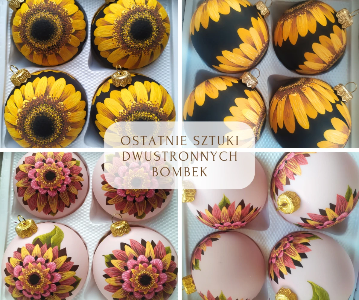 Maluje szklane bombki gwaszami akrylowymi :) w ofercie dostępne są motywy kwiatowe, zwierzątka i postacie z bajek. Mogę również wykonać typowe zdobienia świąteczne.