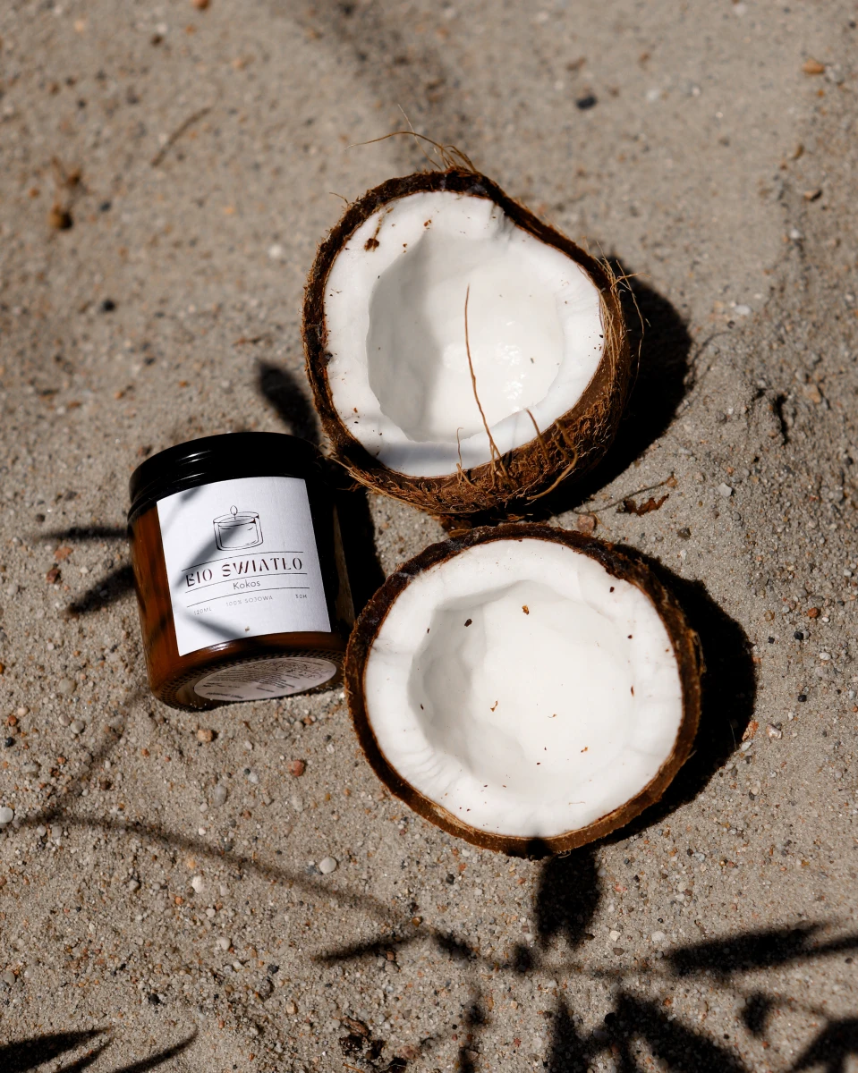 Odkryj luksusowy relaks z naszą ekologiczną świecą sojową Kokos – doskonałym dodatkiem do każdego wnętrza, który wprowadza ciepłą, przytulną atmosferę i delikatny zapach kokosa.
