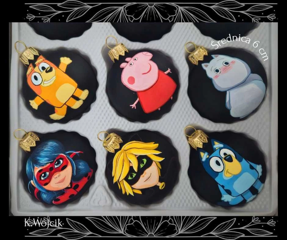 Maluje szklane bombki gwaszami akrylowymi :) w ofercie dostępne są motywy kwiatowe i postacie z bajek. Mogę również wykonać typowe zdobienia świąteczne.