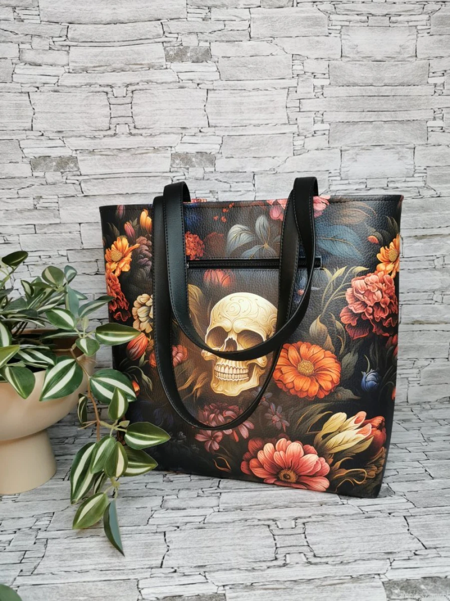 Duża pojemna torebka typu shopper bag , zamykana na zamek . Torebka jest wygodna , pakowna . Zapakujesz do niej Twoje potrzebne rzeczy . Swobodnie zmieści format A4 . Wykonana została z drukowanej ekoskóry . Wzór jest niezwykle kolorowy jak i unikatowy . Prezentowana torebka łączy w sobie funkcjonalność , oraz ciekawy design .