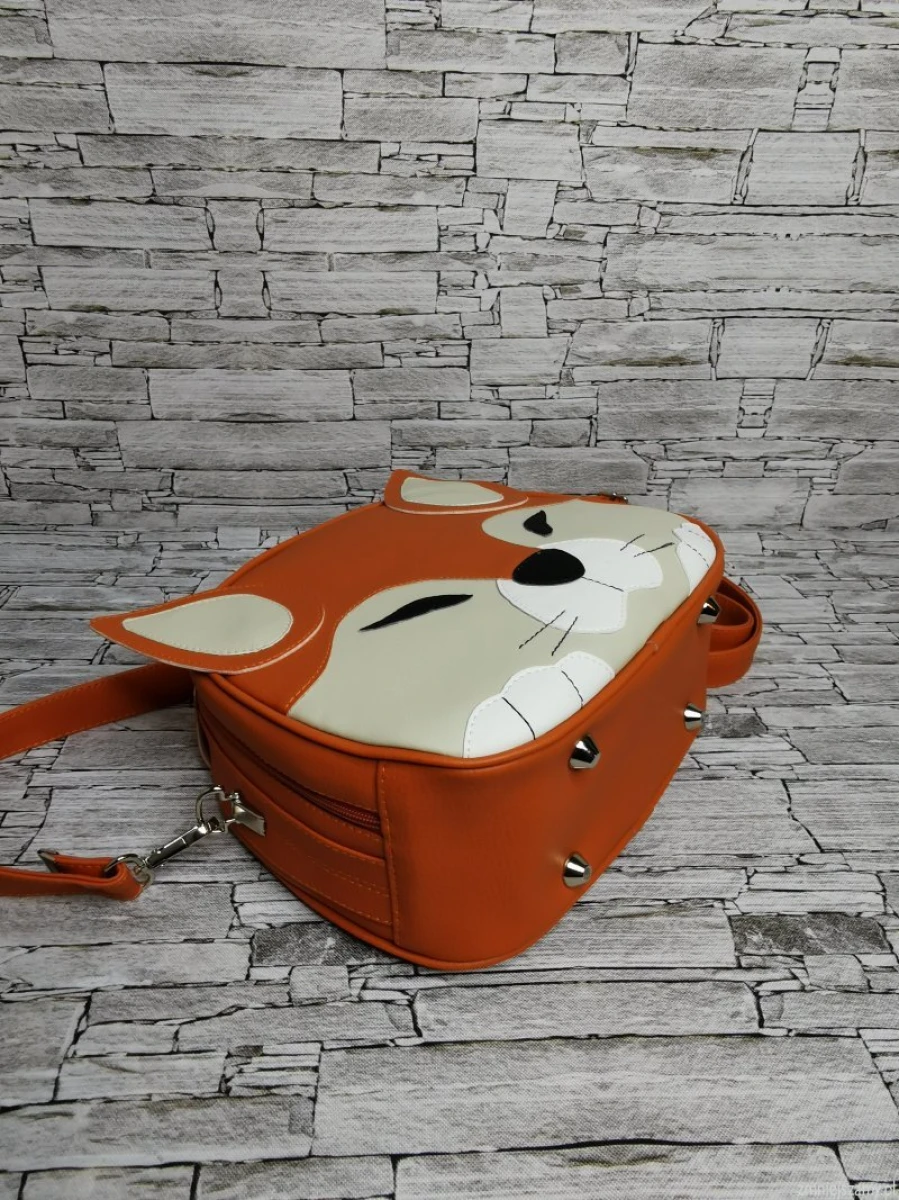 Torebka uszyta z ekoskóry . Na przodzie aplikacja lisa . U góry wygodny uchwyt . Zapinana na zamek . Wewnątrz wzorzysta podszewka z tkaniny poliestrowej wodoodpornej . Dwie kieszenie jedna na zamek , druga wsuwana oraz smycz z karabińczykiem na klucze . Kieszeń na zamek na tyle torebki . Pasek odpinany regulowany w komplecie . Od spodu torebki cztery metalowe stopki .