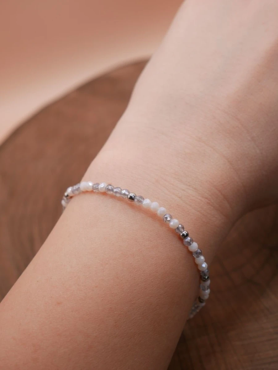 Delikatny komplet składający się z naszyjnika oraz bransoletki, wykonany ręcznie z drobnych kryształków szklanych. Doskonały na prezent lub do codziennych stylizacji.